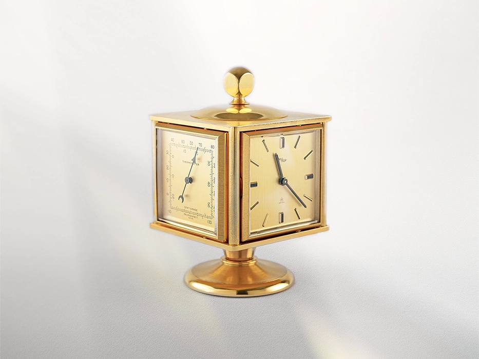 Equally remarkable is the four-sided Imhof clock that resides in the office of Pope Francis at the Vatican in Rome. This gilt desk clock has four faces that feature the time, a thermometer, a hygrometer, and a barometer.