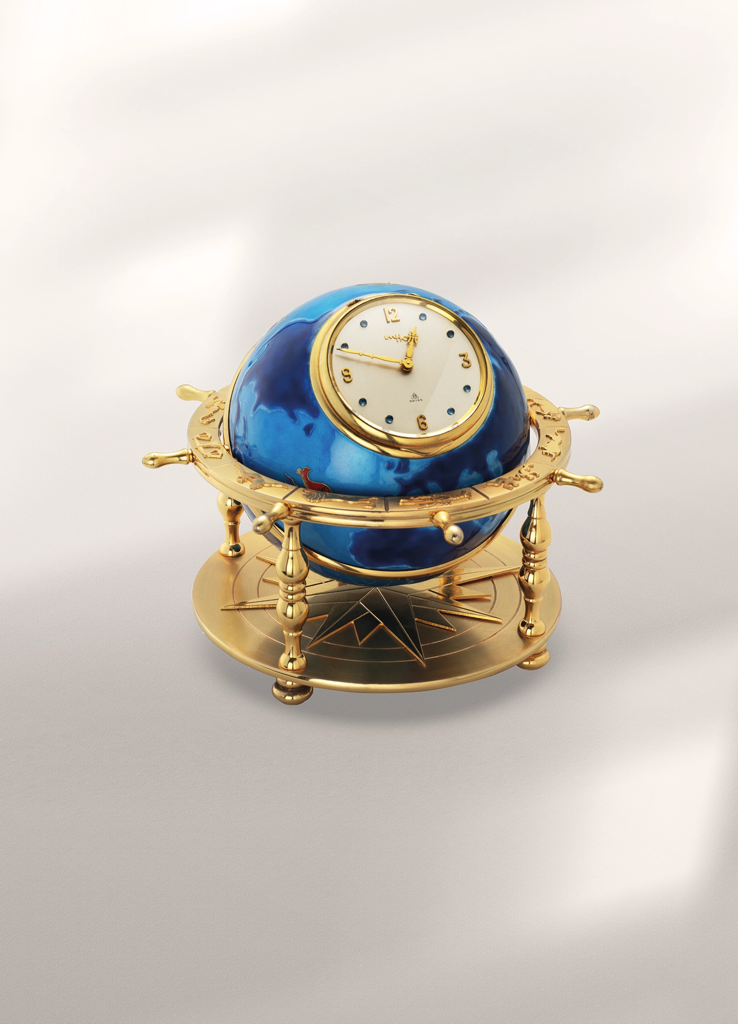 At the height of its activity, the company’s catalog counted hundreds of exclusive deluxe models that ranged from practical travel alarm clocks to ornamental gem-set table clocks incorporating secret cabinets. Imhof’s artisans crafted period-style models with enamel dials and highly complicated mechanisms including worldtimers, perpetual calendars, mystery clocks, and mechanical movements with eight-day power reserves.