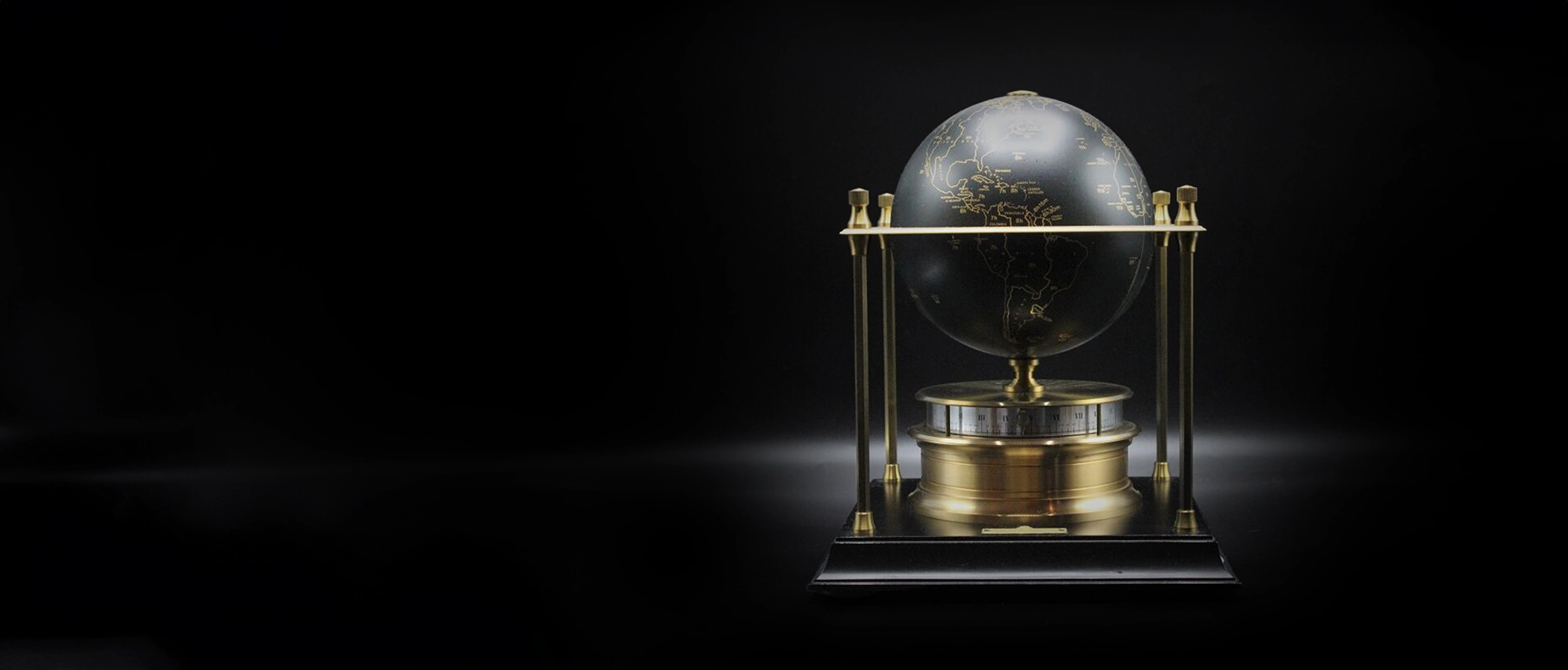 This exceptional piece was created in a limited edition in 1981 and features a unique combination of brass and ebonised wood in its design. The clock features a brass globe painted black, with the continents and countries in gold. It also features a Rotating Circle dial that adds to its aesthetic appeal.